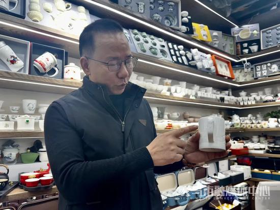 在红松工艺礼品店铺内,经营户李红松展示了一套融合了传统文化与现代设计的“一眼千年”系列茶具。总台2025年春晚小品《借伞》中,以《白蛇传》的“断桥借伞”桥段为灵感,通过一把西湖绸伞串联京剧、越剧等多种戏曲元素,传递“天下有情人终成眷属”的主题。“节目一播出,当天就有老客户通过微信来找我下单。”李红松介绍,该款茶具把《白蛇传》的元素融入茶具中。包装袋外观借鉴了蛇的菱形鳞片纹理,壶钮设计成雷峰塔造型,茶杯外壁绘有青蛇与白蛇的故事场景,茶漏则做成雨伞形状。