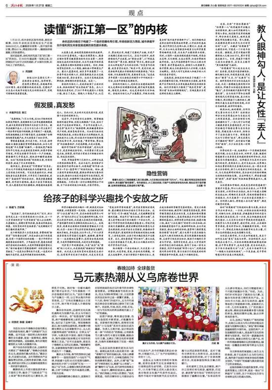 当世界各地的家庭贴上来自义乌的春联,孩子玩起来自义乌的马形玩具,海外游子收到印有家乡地标的春晚文创时,“中国年”的温暖与喜庆便完成了它的全球抵达。