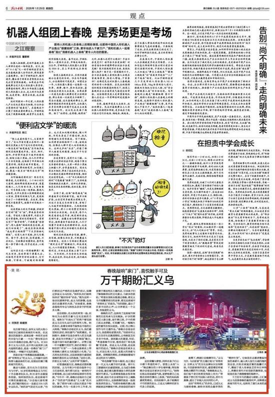 这份“有情有义”的赤忱,已成为义乌献给春晚、献给全国观众最珍贵的“精神年货”。它体现在志愿者整装待发的承诺中,融入商人发往五湖四海的货品里,闪烁在家庭团聚的温馨灯光下,镌刻于老人传承技艺的专注神情上,奔腾在青年开拓创新的激情里,也绽放在孩子清澈憧憬的眼眸中。