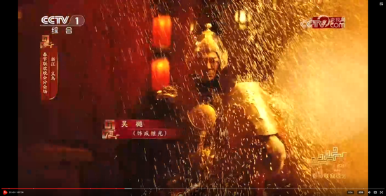 知名演员、国家武英级运动员,曾在《荡寇风云》中饰演“戚家军”将领的吴樾扮演戚继光,身披甲胄策着战马冲破漫天火帘(铁花)。骑马飞驰的情节暗合春晚“骐骥驰骋,势不可挡”的主题。