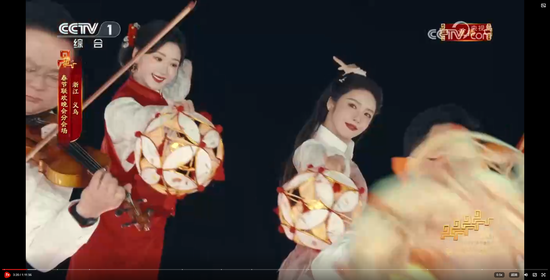 毛晓彤与蔡文静同台亮相,在“义乌之巅”舞起滚灯。滚灯是浙江特色非遗项目,源于南宋,已有800多年历史,在余杭、临平、海盐等地流传,曾在2008年亮相北京奥运会开幕式前表演。而他们手中表演的道具,正来自义乌市场。