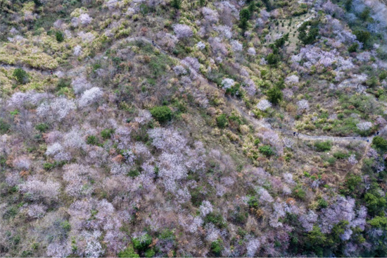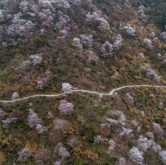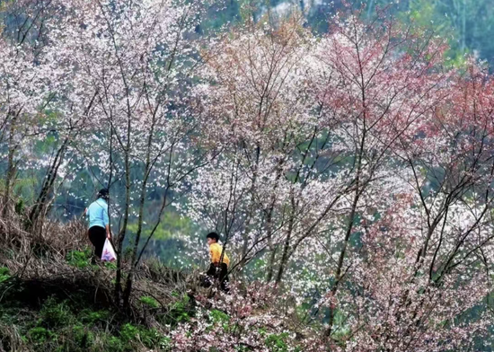 有句话说:只要有花开,我们的日子就不会与黯淡为伍。是啊,这漫山的野樱,是热烈的生命在怒放,是蓬勃的希望破土而出。