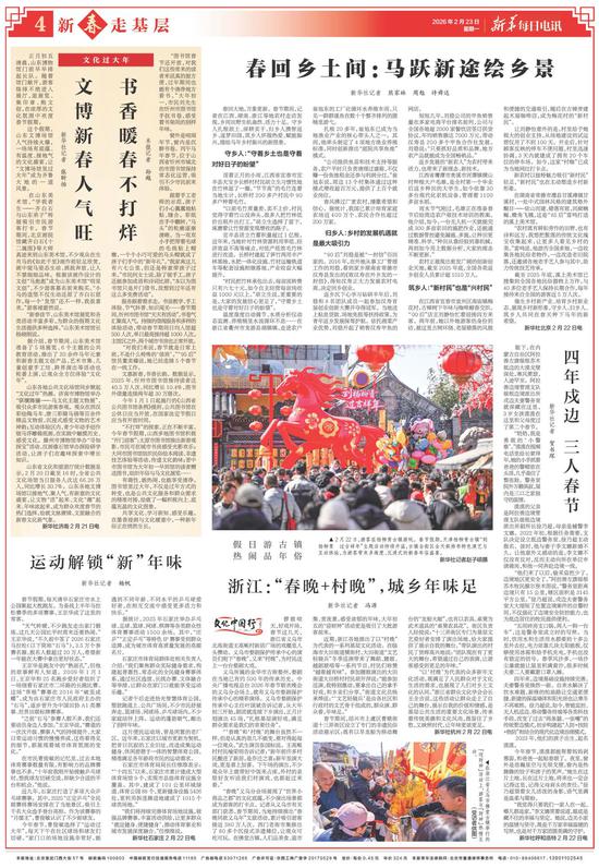 “以‘村晚’为代表的众多新年文化活动,既满足了人民群众对于文化生活的需求,也展现了人们对乡土文化的认同。”浙江省群众文化学会会长王全吉说,这些活动让群众走上了自己的舞台,展示自我的价值和情感,是基层公共生活的重要文化场景,传承着传统美德和文化风尚,既留住了乡愁,又映照时代,让年味更浓更足。
