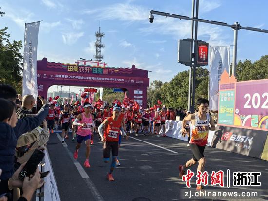 当晨光为浙沪边界的田垄镀上金边,11月16日8时30分,2025平湖金山半程马拉松暨浙沪乡村半程马拉松,在...