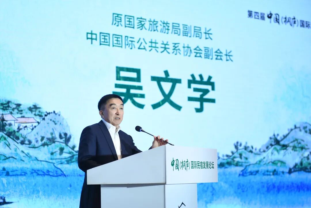 原国家旅游局副局长、中国国际公共关系协会副会长吴文学,带来《新文旅赋能乡村振兴 新民宿引领旅居风尚》主旨演讲。他认为,民宿发展要向内变革。此外,他提到民宿留人的关键在于餐饮。再好的民宿“留不住胃,就留不住人”。民宿是“热闹了才来人”,不是“来人了才热闹”。
