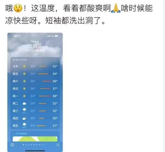 难怪有网友在问:“啥时候能凉快些呀,短袖都洗出洞了。”