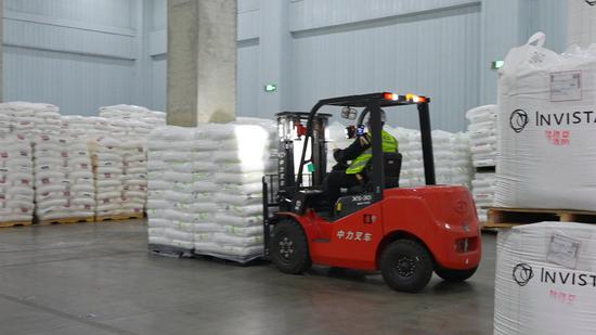12月25日下午,记者走进龙港保税物流园区自营仓库。库内,叉车穿梭转运着PC、PE等聚合物原材料,工人仔细核对货单;库外,多辆货车有序排队等候装卸,现场作业紧张而有序。据浙江省交投物流集团龙港自营仓负责人谢小丰介绍,临近年关,客户每天都有数十辆车前来出入库,日平均出入库量达200多吨。