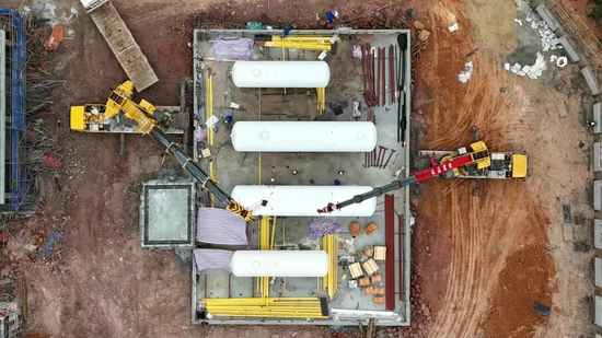 储罐吊装前夜,苍南县LPG储配站项目负责人带着团队做了5轮专项检查:从吊车支腿地基承载力测试,到储罐吊耳焊缝探伤报告复核,甚至细致到每个工人的安全带卡扣是否完好,“12.5吨的罐体,左右两边和实体墙的间距50公分,偏移就可能前功尽弃”。最终,5台储罐精准落位,对接误差控制在3毫米以内。