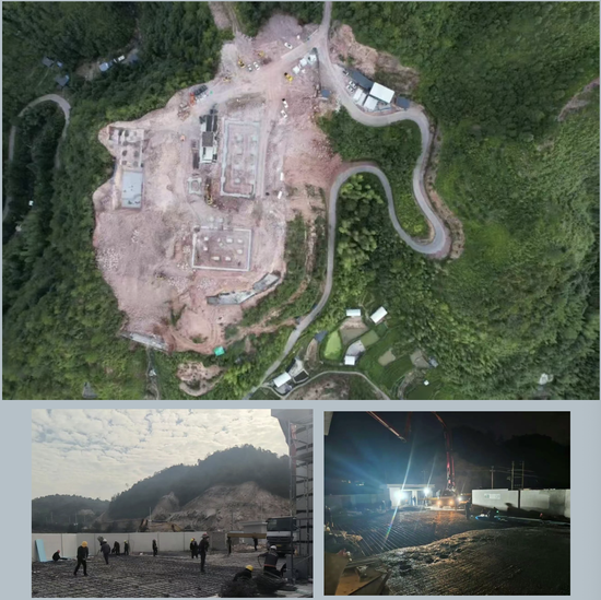 面对12米高挡墙砌筑与11万立方米土方开挖的复杂工况,项目团队采用850、870鹰钩开山机、挖掘机进行高效作业;针对高空及交叉作业风险,创新使用智能安全监测系统,实现实时预警;通过“分区分段、动态调控”的精细化施工组织,将土方开挖、支护施工与结构浇筑等多环节无缝衔接,在保障零事故的同时大幅提升工效——泰顺县LPG储配站5栋单体全部封顶、关键工序一次性验收通过,进度和质量“双优”,成为这座区域能源保障储配站的基石。