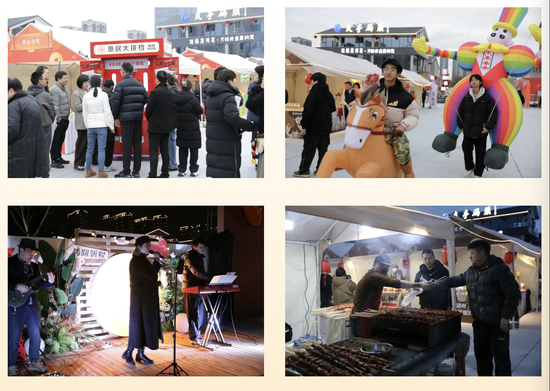 试营业期间,市集六大主题分区——互动演艺区、明火小灶区、市集商铺区等联动亮相,热闹非凡。市集北侧特设流动舞台,每日上演文艺赋美表演,为现场增添文化氛围;免费全家福拍摄、“冲鸭”套圈等趣味互动项目同步推出,拉近与市民游客的距离。75个标准化摊位业态多元,涵盖风味小吃、非遗体验、文创展销、招聘招工等多个领域,连续三日不间断释放浓郁城市烟火气,以满满的诚意与热闹氛围,铸就有温度、有记忆点的城市美食新地标。