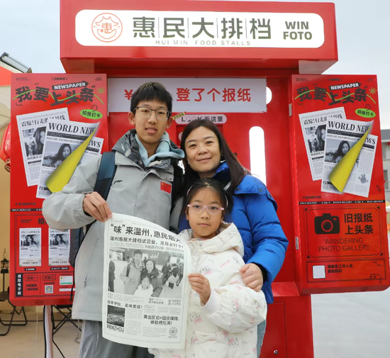 除了舌尖上的美味,这里更是绝佳的拍照打卡胜地,可满足家庭聚餐、朋友小聚、跨年打卡、休闲漫步等多元需求。试营业同步开放的景观打卡点,堪称“行走的画报”:以温州特色“蝤蛑”为原型的螃蟹雕塑自带网红属性,吸睛无数;新增的拍照报纸机趣味十足,市民可与家人一同“登上”新闻头版,定格专属美好瞬间;夜间,LED灯箱与主题灯光交织辉映,景观照明氛围感拉满,勾勒出夜经济的繁盛图景。