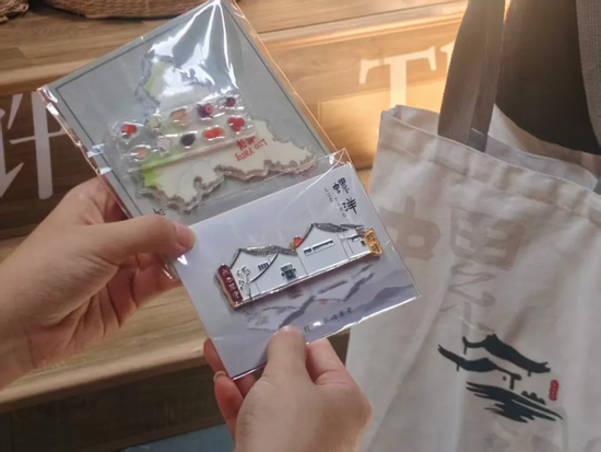 如今,涵盖帆布袋、冰箱贴、扇子等数种产品的“水滨文创”已然成型。其中,印着水心草堂素雅轮廓和《水滨赋》经典节选的帆布袋,尤其受到村民和访客的追捧,成为了一件件行走的文化名片。