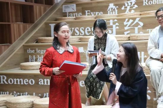 在世界读书日这天,文化礼堂内书声琅琅。谢沁妍正带领着她的“银龄”学员开展“水滨新语”老年语言艺术课。学员们一个个挺直腰板,手捧教材,齐声朗读。学员徐丽萍称赞:“跟谢老师上课很幸福。”