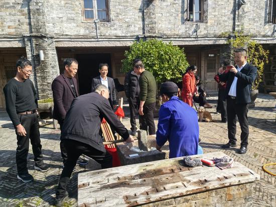 镜头里,几位老师傅正抡起木槌,有节奏地捣着石臼里的米粉团,米香四溢。围观的居民和游客们跃跃欲试,老人们则在一旁鼓掌叫好。