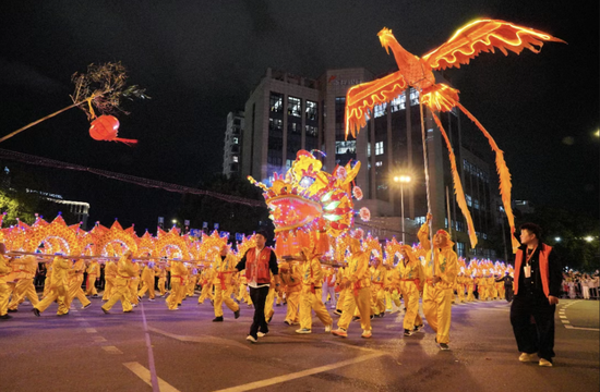当蜿蜒的板龙、腾跃的布龙、溢彩的车龙次第登场,整座城市沉浸在欢乐的海洋中。