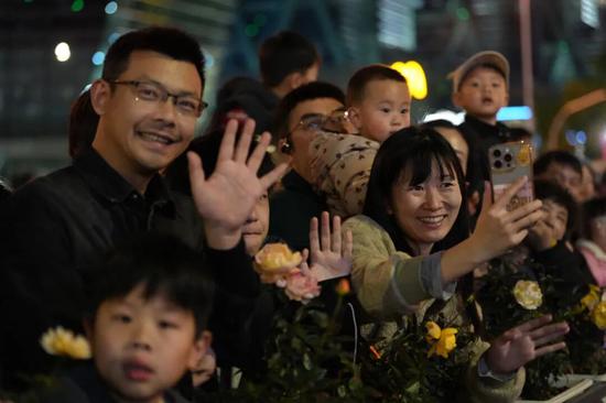 巡游队伍沿花园路南下,锣鼓声、欢笑声随龙影一路蔓延,所到之处皆是沸腾的人潮,沿街观众挥手喝彩,举镜记录,元宵佳节的喜庆溢满大街小巷。