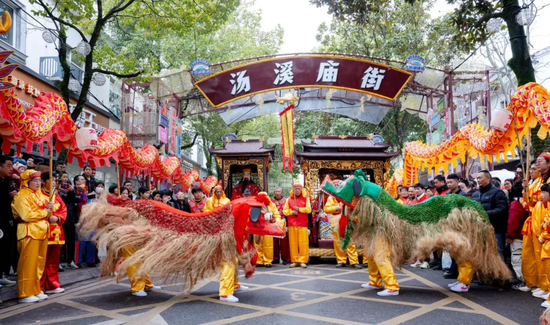 履坦镇水上龙灯展演搭配“飞天凤凰”表演,呈现“龙凤呈祥”绝美盛景,成节日视觉焦点。同时,俞源、坦洪等乡镇擎龙灯,桃溪镇迎大蜡烛、新宅镇“迎相公”、履坦镇“禹王出巡”等非遗民俗活动轮番上演,让群众尽享热闹的元宵氛围,感受民俗文化的独特魅力。