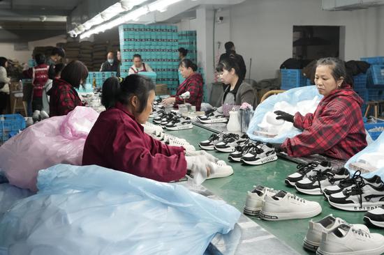 “今年开局订单较多,工期比较紧张,企业通过提高薪资待遇吸引员工,全力保障生产人力供给。”企业销售经理陈军亚介绍说,目前兴旺鞋业复工即满负荷赶产,单日产能达到4500至5000双。面对良好的发展势头,企业定下清晰目标:今年计划产量突破300万双,同比增长30%至60%,以实干实绩实现产能与效益双提升。
