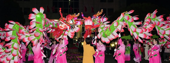 行进途中,长龙翻腾起舞,身姿矫健。小朴马灯阵形不断变换,跃步轻快,传承百年的民俗技艺在表演者的手上焕发新生,马年添马灯,更添吉祥寓意,寄托着海岛群众对风调雨顺、平安喜乐的美好期盼。女子荷花龙柔中带劲,灯光流转间,宛如莲花绽放于街巷,将女性的柔美、海岛的坚韧与民俗的厚重完美融合,成为街头亮眼的风景。