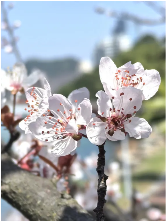洞头的春天,从一抹清丽的淡粉开始。连城大道、海滨河沿线,紫叶李悄然盛放,成为春日里的第一抹惊喜。粉白色的花瓣缀满枝头,叶片呈紫褐色,花叶相间、清丽雅致,风过处花瓣轻舞,随手一拍都是清新氛围感大片。