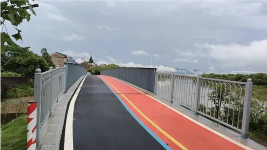 如今,原本的坑洼泥路已华丽变身为色彩缤纷的塑胶路面,宽敞的坡道里标线笔直清晰,一举打通了绿道的“任督二脉”,让断点成为历史。