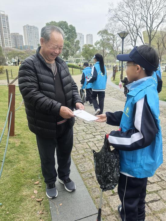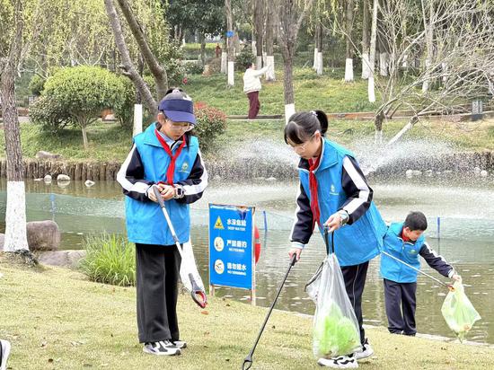 除了巡河,明镜公园活动现场,水利局党团员志愿者通过展板讲解、发放《河长制工作手册》《节水知识读本》等资料,向市民普及水资源保护、水土保持及涉水法律法规知识。青少年志愿者与家长组成“亲子护水队”,沿河清理烟蒂、塑料瓶等垃圾,并向周边居民宣传爱河护水理念。“和孩子一起动手清理河道,能增强孩子们的环保意识,也让他们明白保护水资源需要从身边小事做起。”参与活动的家长林国选表示。