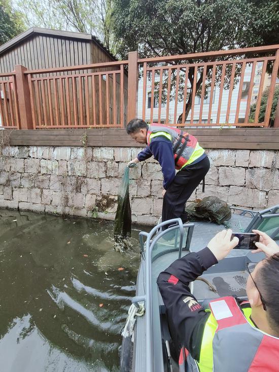 “这些‘绝户笼’就是河道的‘牛皮癣’,它在,小鱼小虾就无法良好生长。”当天上午,身着救生衣的民间河长们驾驶冲锋艇从明镜公园渡口出发,沿河道展开拉网式巡查。针对非法设置的“地笼网”等捕捞工具,河长们逐一清理并现场销毁。这些“绝户笼”严重破坏了水生生物链,民间河长洪端艮直言:“五水共治成果来之不易,绝不能让少数人的违法行为毁掉水清岸绿的生态。”仅一上午,团队便收缴十余张地笼网,放归被困鱼虾后,将渔具交由相关部门集中处理。