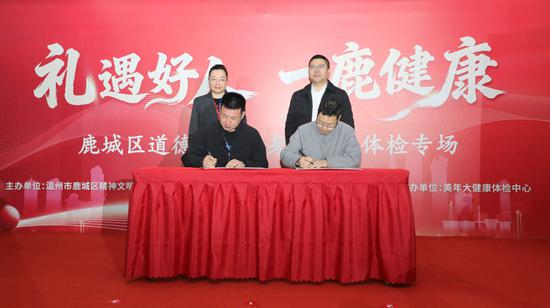 启动仪式上,在与会嘉宾的共同见证下,鹿城区文明中心与温州美年大健康体检中心正式签署战略合作协议。双方将携手建立长期稳定、专业规范的好人健康服务机制,推动礼遇好人工作走向制度化、常态化。