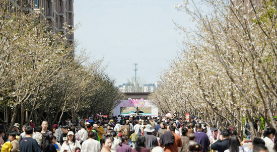 3月28日,海曙区石碶街道江上社区第四届樱花汇活动在江上花园小区“樱花大道”浪漫启幕。