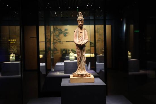 以即将限时返场展出一个月的北宋彩绘木胎泥塑菩萨立像为例,升级后的展柜使其被近距离观赏时不再受玻璃反光所扰。泥塑菩萨体态轻盈、线条圆润、姿态修长,就连发髻处的泥塑痕迹也清晰可辨。这些细微的历史印记,将在全新展陈条件下首次如此真切地呈现在观众眼前。
