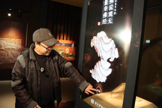 在工艺馆展区内,珍藏于此的《佛说观无量寿佛经》残页也以数字化的形式再度重现。据介绍,作为见证中国古代活字印刷术的重要实证,该残页出土于温州白象塔,经专家考证具有明确的活字印刷特征,可辨字达166个,已被列入人教版七年级下册历史教科书。