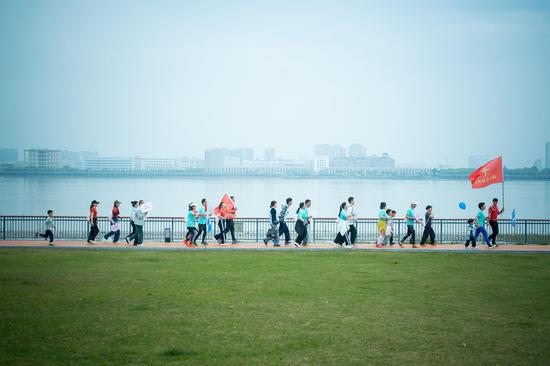 本次活动以 4.2 公里健步走为主,呼应世界孤独症关注日的主题“提质全生涯服务供给,聚焦孤独症家庭支持与成年服务”。路线全程插设蓝色主题宣传旗,设置折返点与终点两个打卡点,简化流程、降低参与门槛。星宝家庭手持打卡卡完成打卡,即可领取星光完赛勋章与定制礼品。20多名跑步爱好者组成护跑队全程陪伴,提供路线引导、安全看护与应急帮扶,医疗组全程随行保障,让亲子健步走既安全又暖心。市民徐女士的孩子即将从特殊教育学校毕业,这次特地让孩子在现场设摊制作柠檬茶,进行职业体验,她说这样的活动挺好的,一方面可以让孩子增长见识,另一方面也能与其他孩子一起互动交流,健康成长。