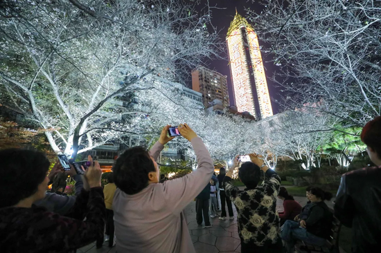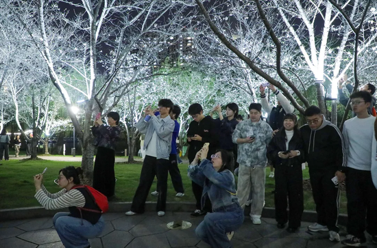 夜樱的走红也离不开“民间后援团”的帮助,林爱寿告诉记者,为了回应市民的殷切期盼,他每天在视频号更新夜樱现状,听取市民的建议,精益求精改善灯光。“未来,我们还将根据花期和游客反馈,动态调整灯光角度与色温,让每一朵樱花都能在最适合的光线下,讲述春天的故事。”
