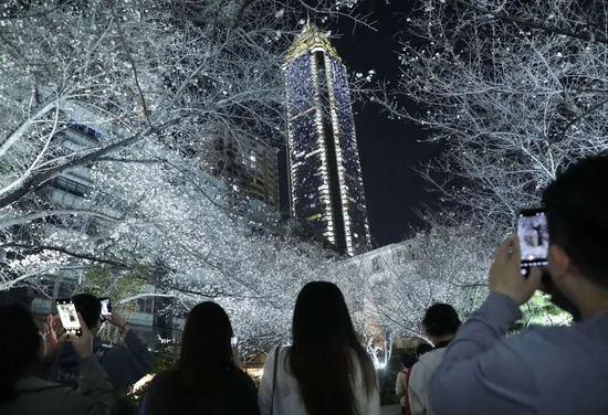 受近期阴雨低温影响,今年樱花盛放比往年推迟了约5天,最佳观赏期将从下周一(4月6日)起持续一周,拍摄夜樱的黄金时段则是每晚6:30-7:00。