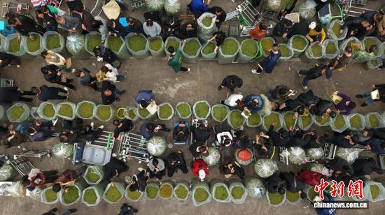 4月1日,采茶工将鲜叶收入篓中。近日,浙江湖州安吉县21.36万亩安吉白茶迎来大面积开采。今春天气晴好,雨量充沛,为“白叶1号”茶树营养物质积累和茶芽萌发提供了利好条件,预计茶叶品质将有所提升。中新社记者 孙杨洋 摄
