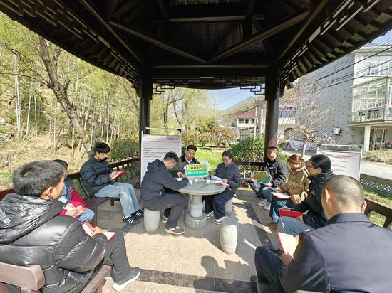 中新网浙江新闻3月31日电春风送暖,杨柳吐绿。近日,在浙江省长兴县煤山镇和岕口村的一座亭廊内,一...