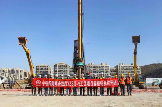 浙江舟山:甬舟铁路舟山站首桩开钻...