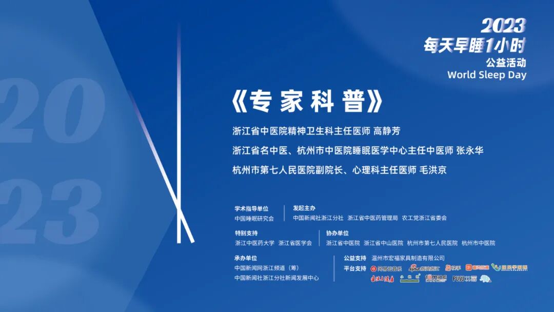 3月21日是世界睡眠日,为倡导民众形成早睡一小时的良好习惯,传递通过中西医手段科学面对睡眠问题、形成健康生活的理念,由中国睡眠研究会担任学术指导,中国新闻社浙江分社、浙江省中医药管理局、农工党浙江省委会共同发起主办的2023“每天早睡一小时”公益活动将于当日正式启动。
